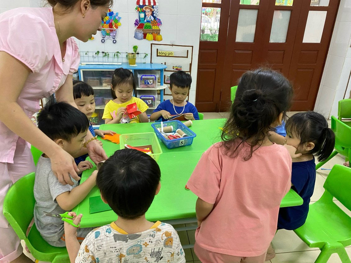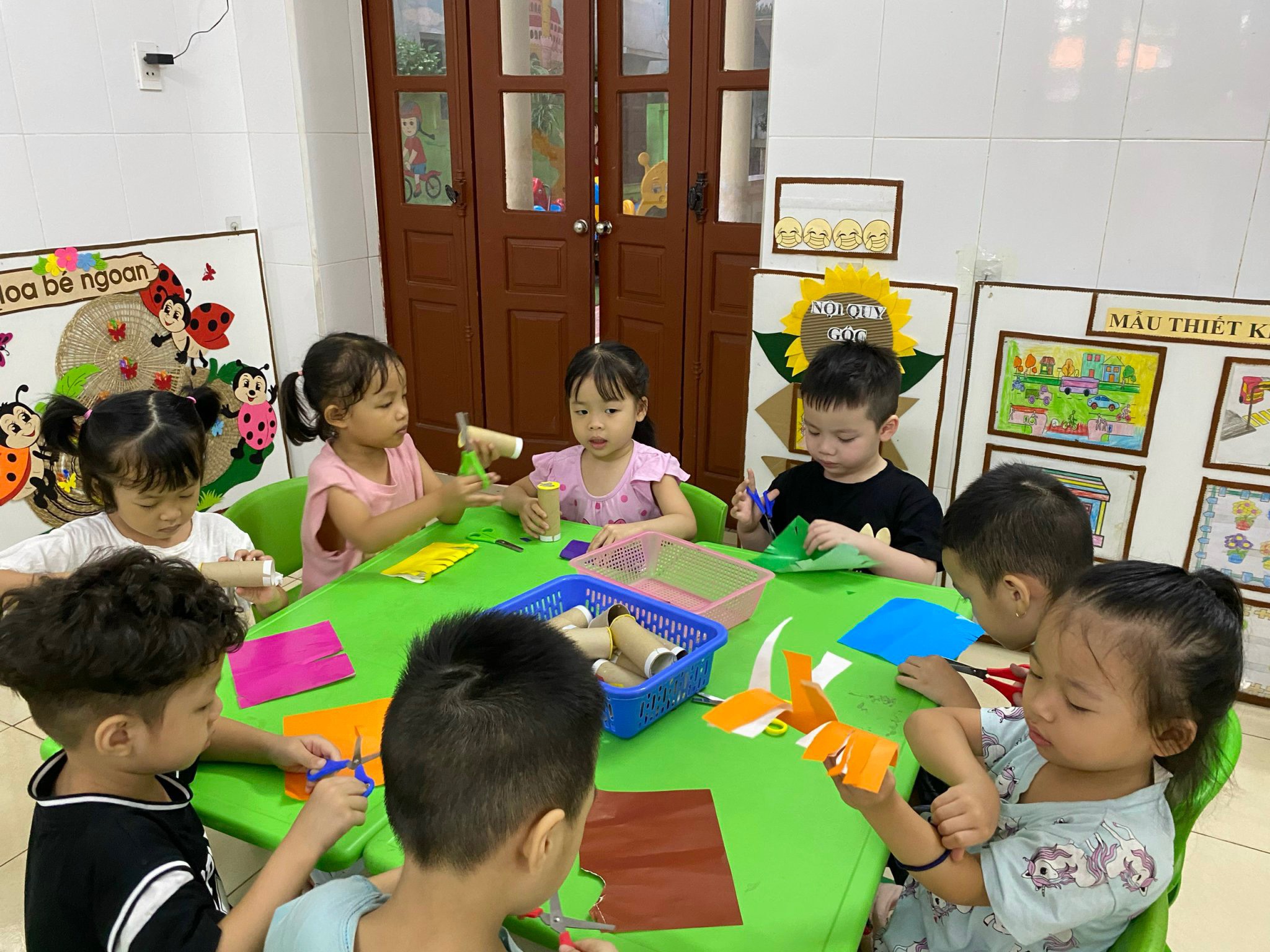 Từ những NVL là những lõi giấy vệ sinh, giấy thủ công.... tạo thành chiếcđèn lồng thật xinh.