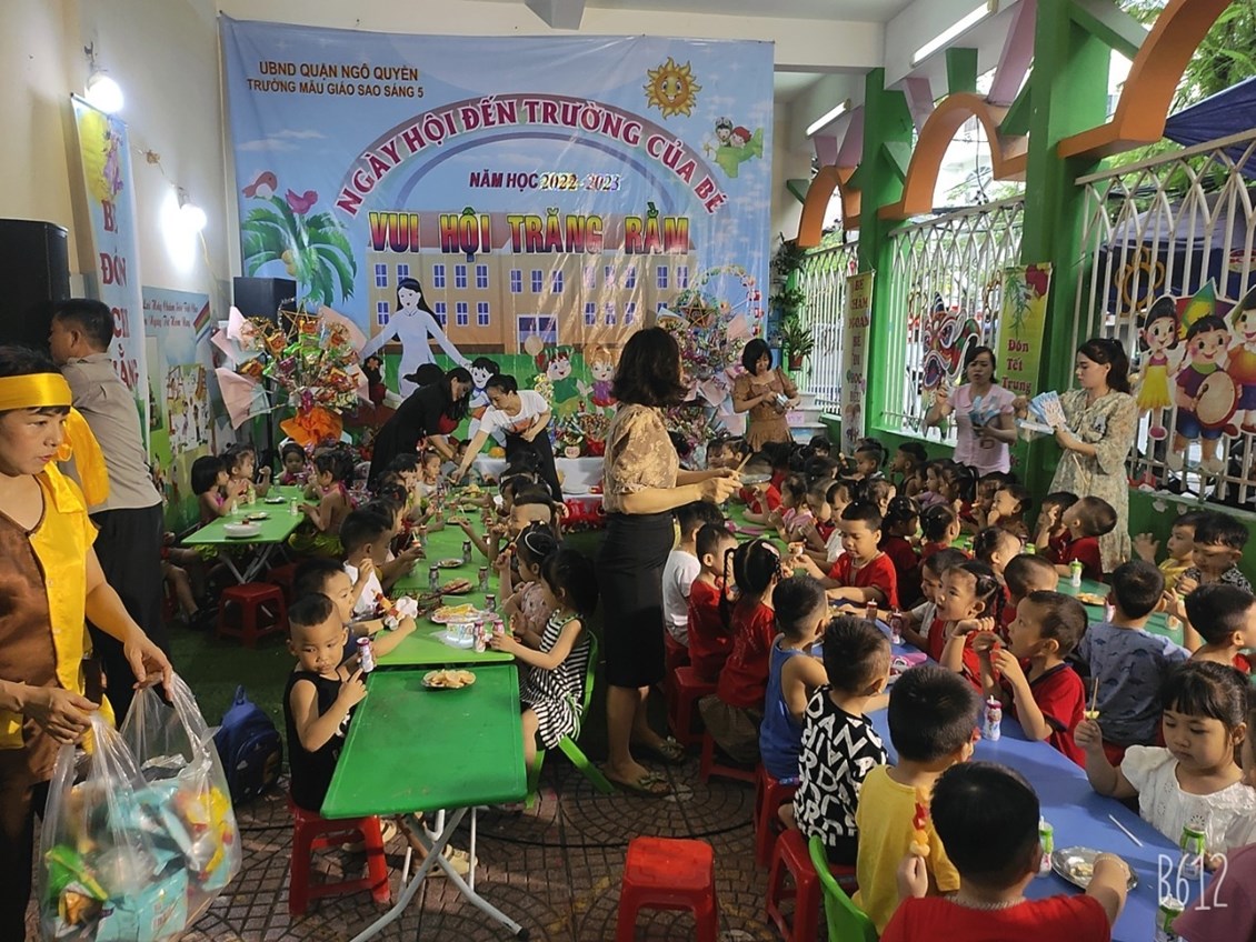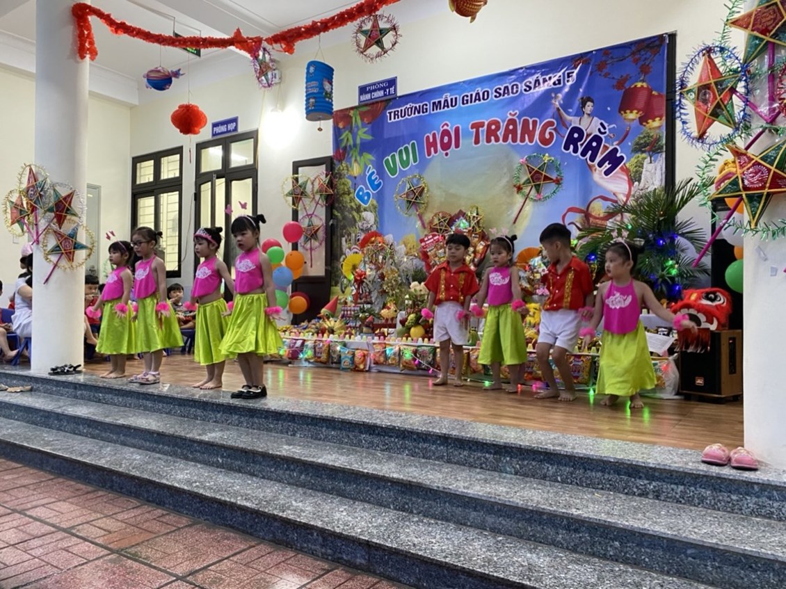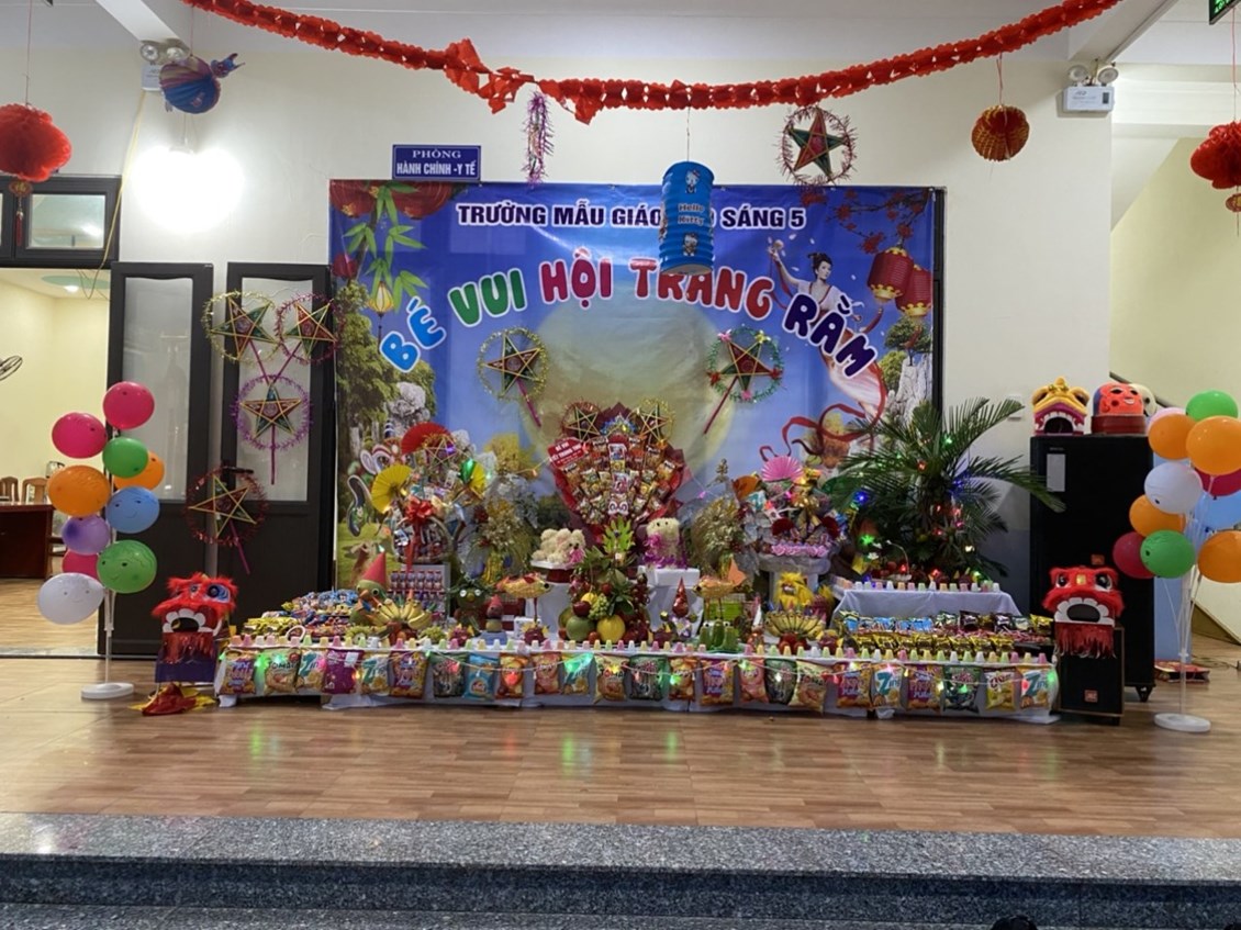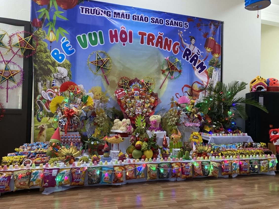 Không khí Trung thu đã tràn ngâp khắp mọi nơi cùng niềm vui hân hoan của tuổi thơ. Trẻ em háo hức cùng nhau phá cỗ, rước đèn. Các bé trường Mẫu giáo Sao sáng 5 vô cùng thích thú khi được đến trường, cùng nhau đón một Tết Trung thật vui vẻ và ý nghĩa.