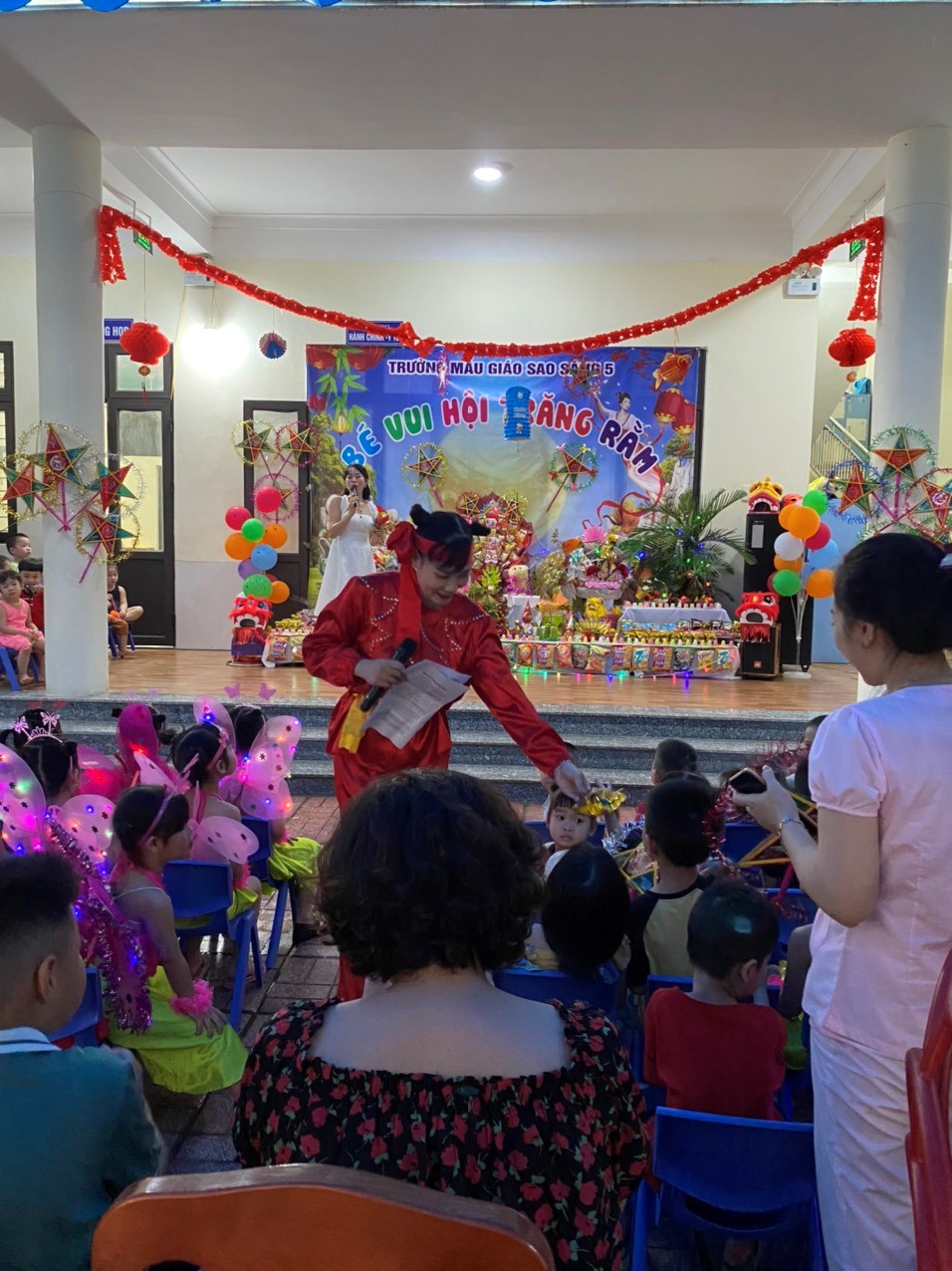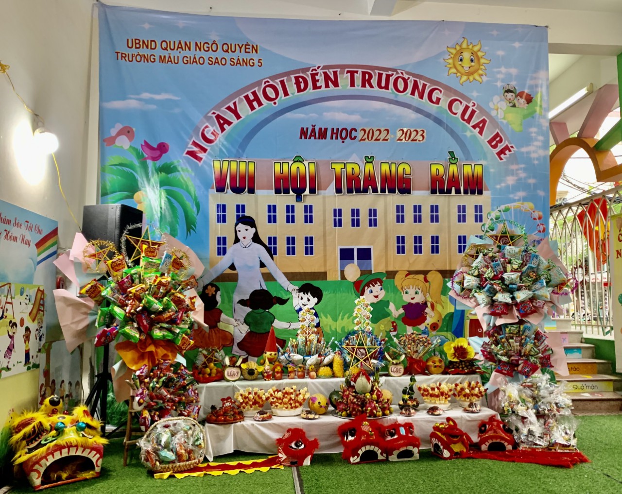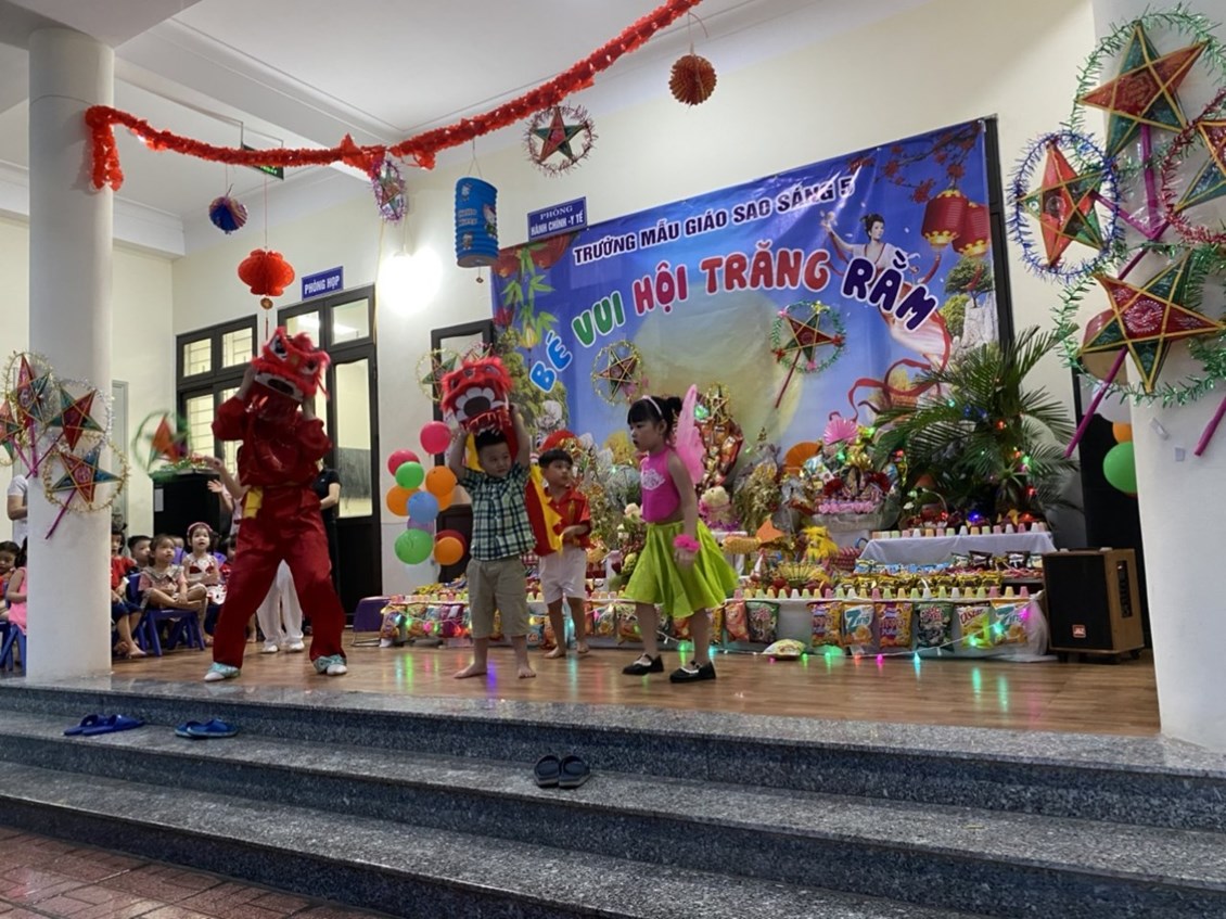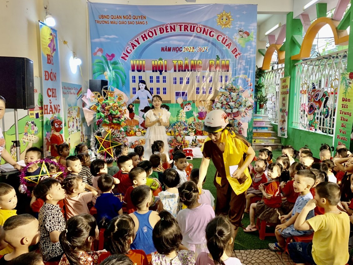Không khí Trung thu đã tràn ngâp khắp mọi nơi cùng niềm vui hân hoan của tuổi thơ. Trẻ em háo hức cùng nhau phá cỗ, rước đèn. Các bé trường Mẫu giáo Sao sáng 5 vô cùng thích thú khi được đến trường, cùng nhau đón một Tết Trung thật vui vẻ và ý nghĩa.